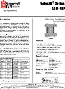 Aom-2Rf Data Sheet. Addressable output relay control module. 255 ua (velociti mode) 230 ua (clip mode) alarm current: