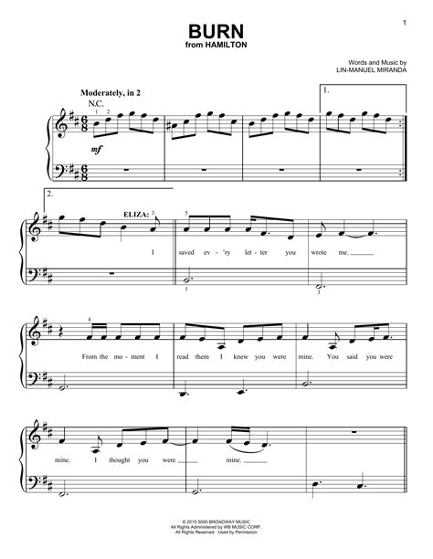 Burn Piano Sheet. Sheet music, pdf, burn, hamilton.