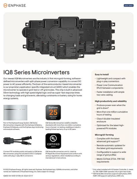 Enphase Iq8H Spec Sheet. Iq8m and iq8a microinverters datasheet.