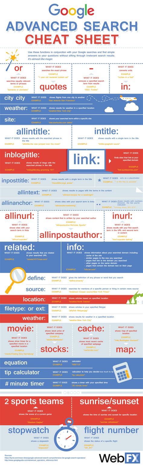 Google Search Operator Cheat Sheet. You can find all of the major organic search operators below, broken up into three categories: Web google earch operators cheat heet 2 no.