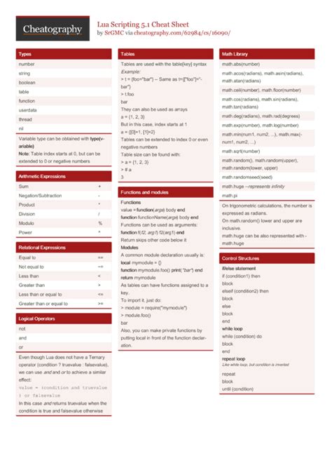 Lua Cheat Sheet. Web lua programming cheat sheet page 1 of 2 by seth kenlon. Lua is a lightweight, fast, embeddable, dynamically typed language.