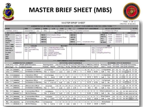 Marine Corps Master Brief Sheet. Web marines can order their ompf (official military personnel file) and or mbs (master brief sheet) by writing or faxing a. Web maradmin 141/05 msgid/genadmin/cmc washington dc// subj/revised master brief sheet//.