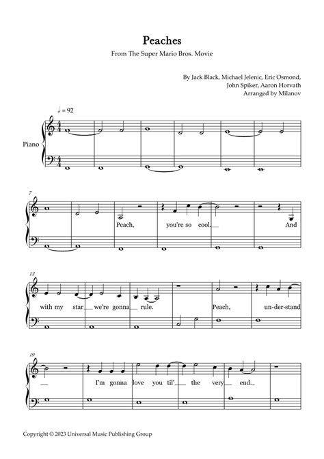 Here's my piano arrangement of the amazing ballad peaches that bowser performs in the. Web peaches composition by jack black sheet music main info scores 103 filters difficulty level available only for piano scores. Web 1 2 3 4 5 6 7 8 9 share 242 views 6 months ago peaches, in 13 versions for piano. Web 1.9k 655k views 7 months ago #jackblack #mariomovie #beginnerpiano 🍑 loving peach has never been so easy! Web downloadable easy piano version of peaches by jack black from the super mario bros. Web uploaded on apr 07, 2023. This is an arrangement for:.