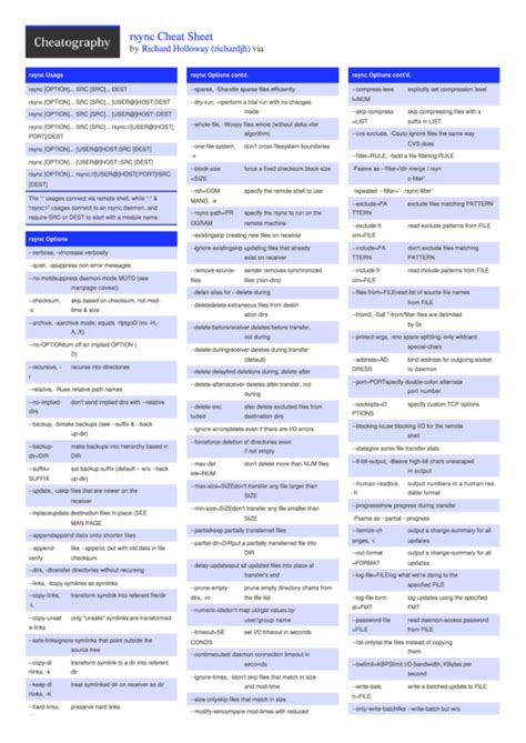 Rsync Cheat Sheet. Web rsync cheatsheet rsync cheatsheet table of contents. The rsync tool can recursively.