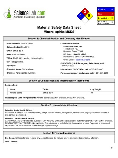 Web 3 rows mineral spirits. Category 2 eye irritation :. Hazards identification ghs classification flammable liquids : Category 3 skin irritation :