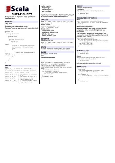 Scala Cheat Sheet. Web a quick reference of scala syntactic constructions, such as variables, functions, types, packages, data structures, control.