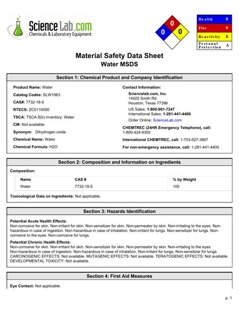 Sds Sheet Water. Identification of the substance/mixture and of the supplier product name: Web product name water cat no.