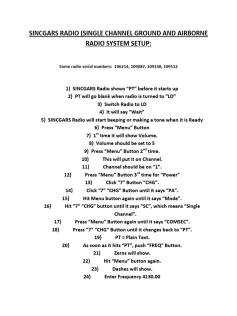 Sincgars Radio Cheat Sheet. Operate sincgars radio single channel. Precision lightweight gps receiver (plgr);