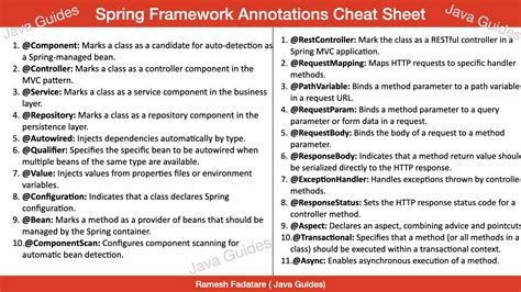 Spring Annotations Cheat Sheet. Web in this article, we saw an overview of the most common spring core annotations. Web annotations cheat sheet spring boot and web annotations use annotations to configure your web application.